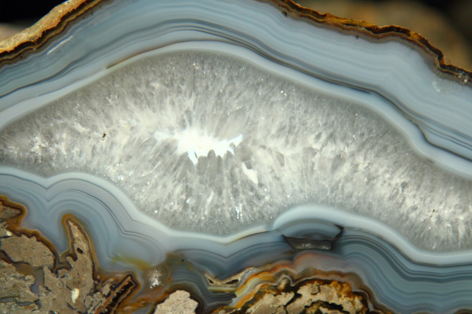 Agat, kuvars ailesine ait yarı değerli, doğal bir mineraldir. Kimyasal formülü SiO₂ (silisyum dioksit) olan bu taş, doğada genellikle bantlı ve damarlı yapısıyla bulunur.